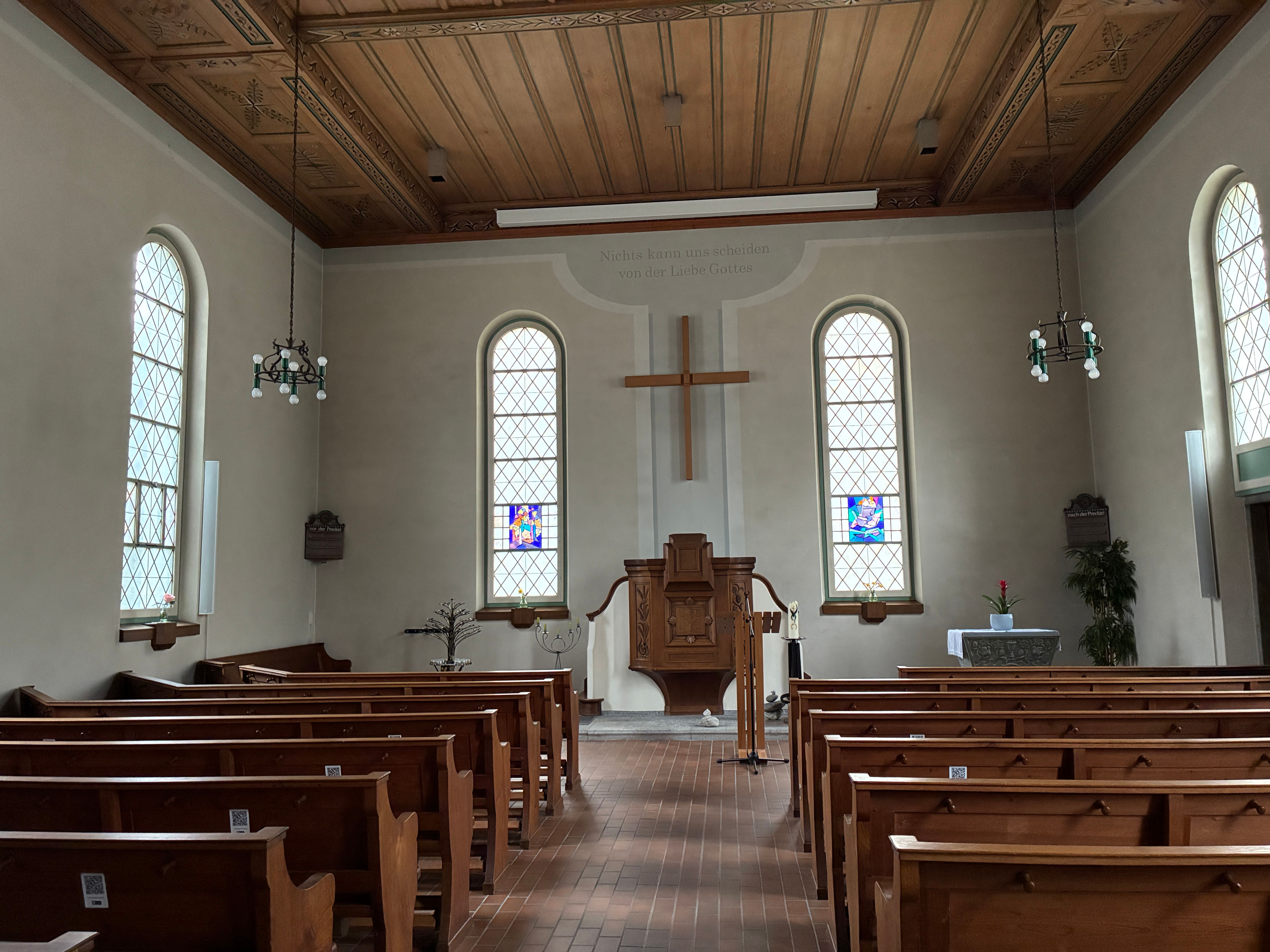 Tipps Sitzplätze von Mittelgang aus rechts wie links bis Mitte Kirchenbank für Hörgeräteträger gut geeignet. Restliche Plätze kein Empfang.
